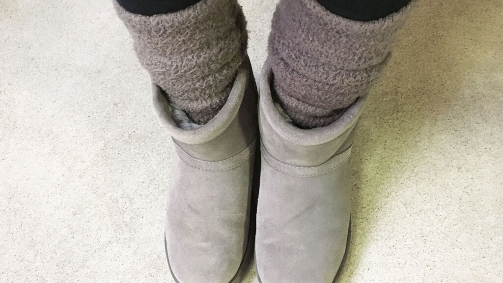 (※追記→2022年の冬は寒かったので3点とも履きました。買ってから数年経は活躍していましたが、収納の関係で2025年に手放しました。今度購入するときは、柔らかいタイプのムートンブーツを選ぶと思います。)